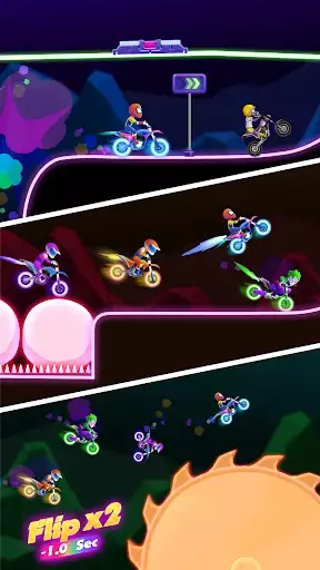 - Sick stunts and insane tricks as you flip and wheelie through the fast levels