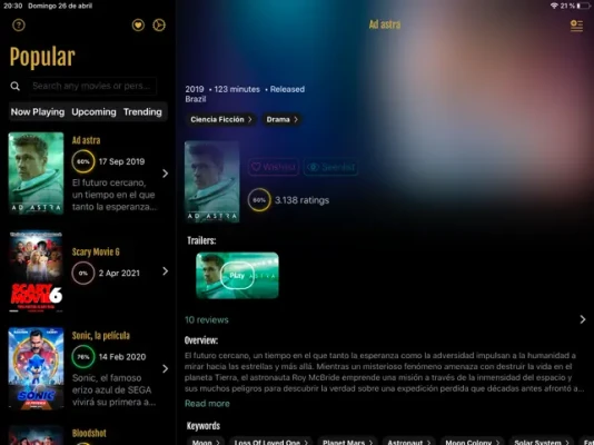 Movie Premiers offers you easy, fast and intuitive access to the latest news in movie releases in cinemas…. and totally FREE.