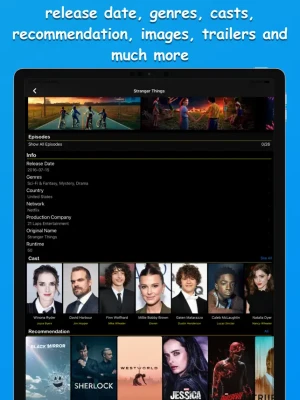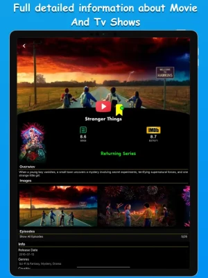 In the application, you cannot watch films and series for free, but you can find in the application a complete description of the series and films and also the service on which you can watch them.