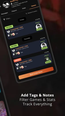 Create playgroups, add friends, list your decks and save ALL your MTG games to get meaningful statistics all with a free account.