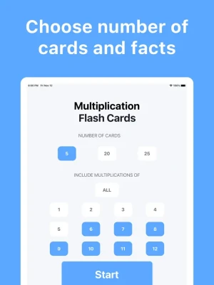 Want to practice a specific type of problem? We've got you covered. Just select which problem you want on the home screen. Want to change the amount of cards you want to practice? No problem! Select the number of cards on the home screen.