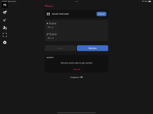 SELF-CUSTODIALMutiny funds are locked to your 12 words. Send and receive on lightning without trusting a custodian.