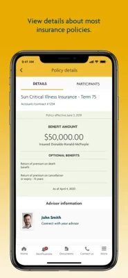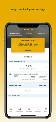 The my Sun Life mobile app gives you fast, easy and secure access to your:• group benefits, • personal life and health insurance,• group registered retirement savings plans (RRSPs),• individual or group savings plans,• insurance claims and e-claims,• retirement plan, and• investments.