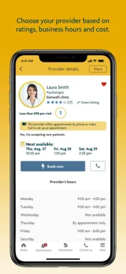 • use the Lumino provider search to search for health-care providers in your area (e.g. psychologists, dentists, chiropractors) and book appointments with them,