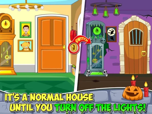 Find the friendly skeleton and make sure to look into each room! There’s a friendly witch hiding at the end of a secret passage and she’s waiting to be found! What’s that under the bed? Better check it out!