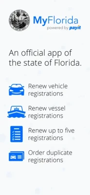 Introducing a faster way to pay for vehicle and vessel registration renewals in Florida. Get the official app of the Florida Department of Highway Safety and Motor Vehicles, and pay with a tap.