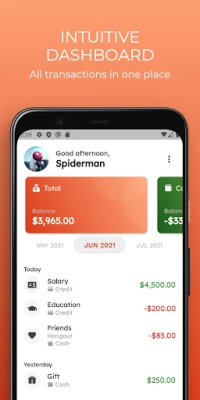 - Easy to read reports of the total expense, total income, spending by each category, or pending bills help you understand the cash flow better