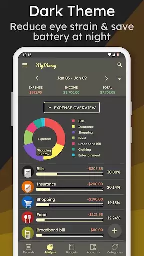 How to manage money and track expenses with MyMoney? It's simple, just add an expense record when you are spending somewhere. MyMoney will take care of it. See every dollar you spend to pay a bill, buy a coffee or anything with ease. MyMoney is your ultimate budget planner app that helps you plan monthly budget, achieve your budget goals and save money effectively. Too much spending on coffee? Set a budget on coffee and surely, you would not cross the budget goal. This limits your money use and helps you control your spending behavior. If you really want to track and save your money, MyMoney is the money tracker app that can really make it simple and easier for you.
