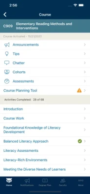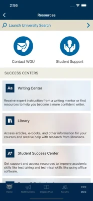 With WGU Mobile, you can easily access your courses, receive timely push notifications for important updates and assessment statuses, and stay connected with your faculty and peers. The app's intuitive interface allows you to effortlessly navigate your degree plan, access course resources, view your progress, and easily find useful resources like the WGU library and Student Support.