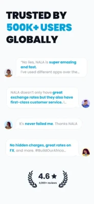 Experience the money transfer service your loved ones deserve. With NALA, effortlessly send money from Europe, the UK, and the US to Kenya, Tanzania, Uganda, Rwanda, Nigeria, Senegal, Cameroon, Côte d'Ivoire—and now Pakistan and the Philippines!
