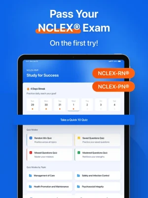 Download now and take control of your NCLEX prep. With our expert-designed features, your success is just one step away.