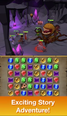 Unleash powerful attacks and magical abilities by matching gems and unleashing devastating combos. Each match fuels your hero’s special moves, adding a strategic twist to the classic match-3 gameplay.