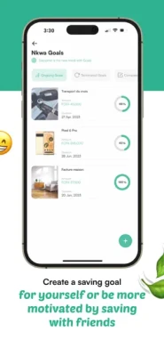 Nkwa Goals vous permet de définir des objectifs financiers spécifiques (intitulé, montant cible, durée cible et amende pour indiscipline), de définir des rappels d’épargne et même de verrouiller les objectifs d'épargne afin que vous puissiez résister à toute tentation d'y déroger.