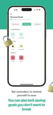 Nkwa Goals: define (name, target amount, withdrawal date & indiscipline fine) specific financial goals, set up reminders to save and even lock saving goals so you can resist the temptation to break.