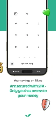 Lorsque vous épargnez votre argent sur Nkwa, soyez assuré qu'il est en sécurité ! Nous sommes une coopérative financière avec conseil d’administration (Coop-CA) affiliée au réseau RAINBOW CAM, et conformément à la réglementation N°01/17/CEMAC/UMAC/COBAC. Nous avons également mis en place une sécurité de niveau militaire de type 2FA ; cela signifie que votre argent n'est accessible qu'à vous et vous seul !