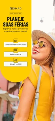 A Nomad é uma fintech que oferece aos brasileiros a solução completa para quem quer ter uma vida em dólar, abrindo sua conta você tem ainda mais liberdade para administrar seus gastos e flexibilizar seus pagamentos de forma prática e segura nas suas viagens.