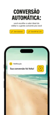 - Ao comprar no exterior, seus dólares são convertidos na moeda local de forma automática e você consegue acompanhar todas as transações diretamente pelo app.
