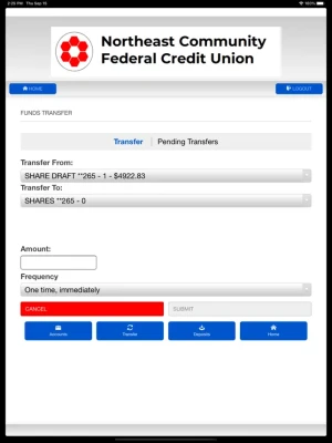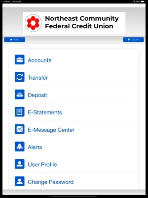 --View account balances and transaction history-Perform transfers between accounts-Online Mobile Deposits-View your Electronic E-Statements-Stay Connected with Northeast Community FCU with our E-messages Center-Manage and setup account alerts-Update your member profile-Change your Password