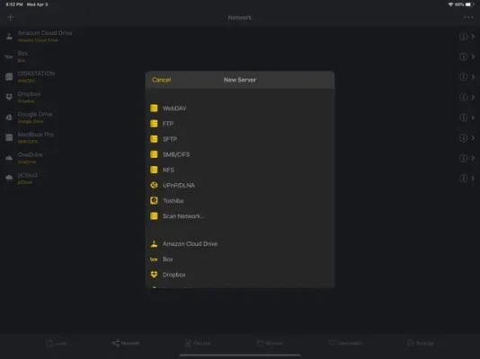 - Supports WebDAV, FTP, SFTP, HTTP, SMB/CIFS, NFS