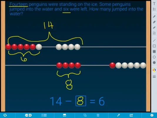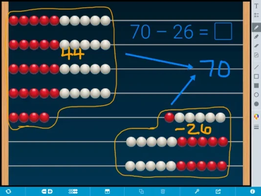 • Hide beads with resizable covers, which allows teachers or learners to model subtraction or difference problems.