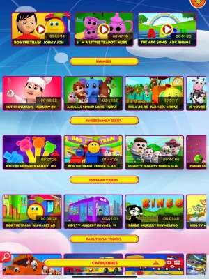 Nursery Rhymes Kingdom App strives to bring to you the entertaining video content over the Internet and presented by the most popular animated characters like Bob the Train, Bao Panda, Farmees, Little Tree House and more.