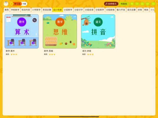 OKMath数学思维旨在以独特的游戏化教学方法,降低孩子对数学思维的认知门槛,提升孩子的理解能力。引导孩子独立思考,探索过程、理解本源,实现会思考,会迁移,终学会独立解决问题,建立终身受益的自信心。 OKMath数学思维将生活中所需的基本数据概念和常见的逻辑思维游戏,以更科学和智能的方式展现给孩子,帮助孩子在轻松快乐的练习活动中,探索知识、培养自信,成为独立自主的学习者! OKMath数学思维提供不同难度的水平等级,满足不同年龄和能力的孩子进行符合自身水平的练习。