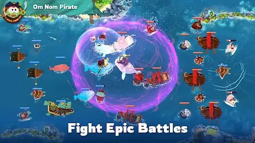 • Help Om Nom to become the most powerful pirate, and fight against other players in fast-paced PvP battles!