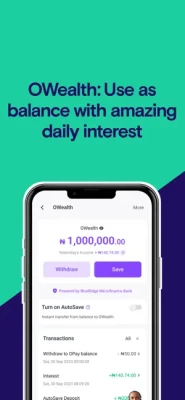 OPay is Nigeria's trusted financial services platform, offering secure, fast, reliable, and affordable solutions for all payment needs. With OPay, you can: • Send and receive money instantly with seamless transfers and a 100% success rate. • Pay bills and top-up airtime & data with exclusive bonuses. • Grow your savings easily with daily interest on your balance. • Enjoy hassle-free debit cards at zero charges. • Access flexible loans with low interest rates.Unlock convenience, savings, and rewards—all in one app. Invite friends and earn instant cashback for each referral. Open your OPay account today and experience financial freedom.