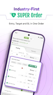 Set a target price that stays active on our FnO app until the specified price hits, including OCO for F&O trading.