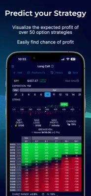 The strategy visualizer makes it easy to scroll through various strikes and expirations to build an options strategy. Nearly any strategy can be created, including strategies with underlying stocks like covered calls, or multiple expirations such as double diagonals.