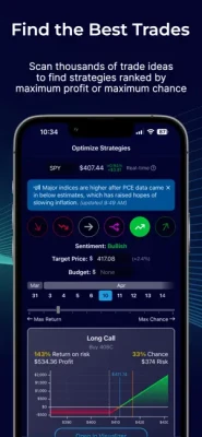 The options optimizer will search through thousands of potential trades to find which strategies maximize returns or chance of profit (or somewhere in between).