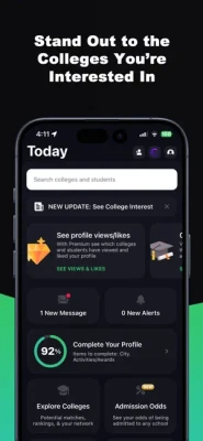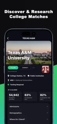 It is a one-stop-shop for high school students to find and connect with colleges they are interested in, not unlike LinkedIn for the employee and employer. College admission reps can see student profiles, target potential students, and message with students through the app. Students can also connect with college alumni, find other students who are similar to them and follow them, message with them, and interact and group chat in special communities with other students.