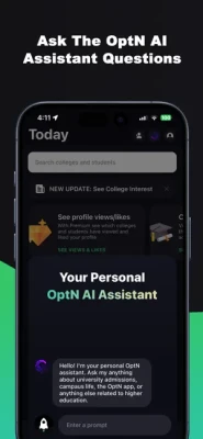 OptN also helps current college students discover and connect with peers at the same university through student-run communities, filters for interests and academics, forums, and more. College students can use OptN to find potential roommates, easily set up class wide group chats/communities, find and promote their organizations, and so much more. It can also be used for students looking to transfer schools.