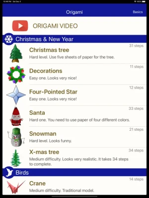 • Here you will find over a HUNDRED animated origami instructions. • Clear step-by-step 3D directions are so simple even KIDS will make beautiful origami. • There are different levels of difficulty. You can advance from simple to complex figures at your own pace.