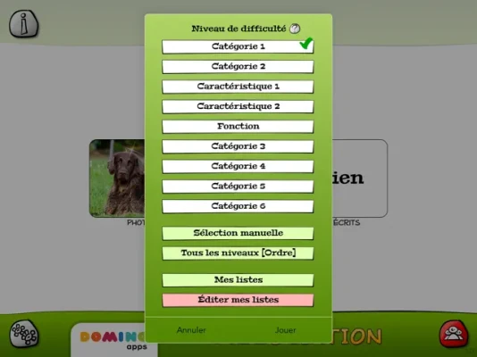 - 8 niveaux de difficulté pour les associations à partir d’images