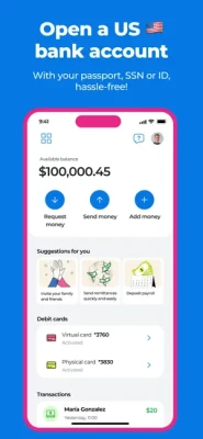 - Open a US bank account with your ITIN, passport, or any of the 150 other official documents we support