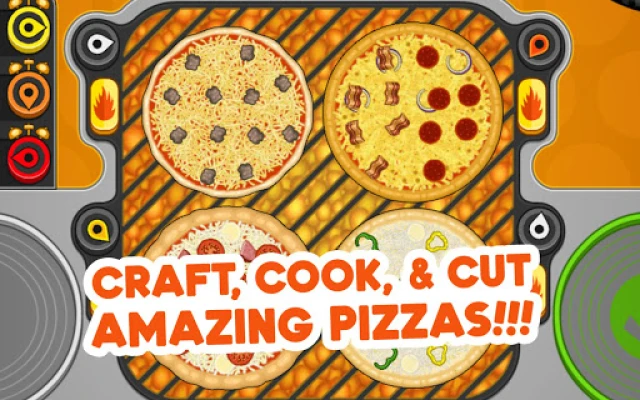 Each station in the restaurant is a hands-on process, and you'll have to multi-task between all of the different stations to keep up with your pizza orders. Choose a crust, add sauce and cheese, and add a variety of delicious toppings to the pizza. Slide the pizza into the oven and wait until it's baked just right. Head to the Cutting Station to cut the pizza into perfect slices, and serve the finished pie to your hungry customers!