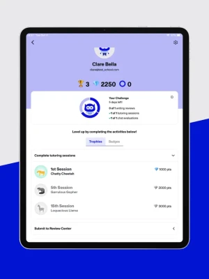 As you work with tutors on the Paper app, you’ll complete challenges, gain points, and earn badges and trophies.
