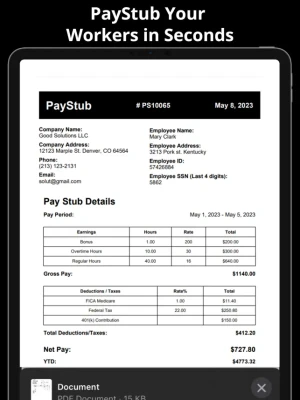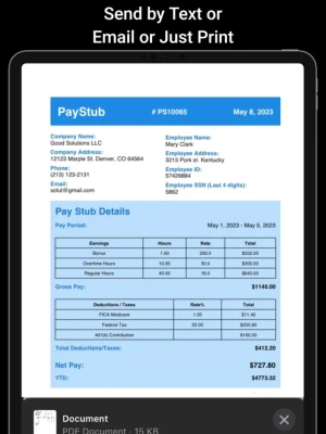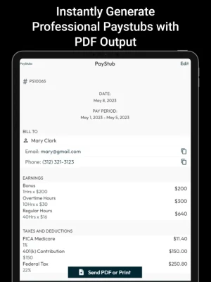 PayStub Generator is a user-friendly mobile application that empowers individuals and businesses to effortlessly create accurate pay stubs. Whether you're an employee, freelancer, or small business owner, our app simplifies the process of generating professional pay stubs. With intuitive features and customizable templates, you can swiftly input pay period details, employee information, and tax deductions, resulting in comprehensive and error-free pay stubs.