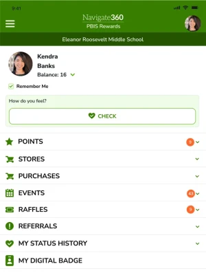 PBIS Student is the student portal to PBIS Rewards. Students can use the app to see how they’re doing and can see what rewards are available as they continue having success within their school’s PBIS program. The PBIS Rewards suite includes the PBIS Rewards Staff App (for teachers and admins), the PBIS Student App and the PBIS Family App.