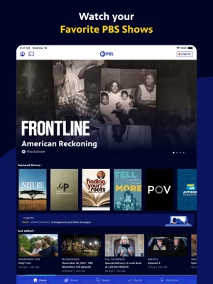 Unlike conventional streaming apps, PBS lets you access local TV live! Stream local content with the PBS App livestream and discover your favorite local PBS station shows.