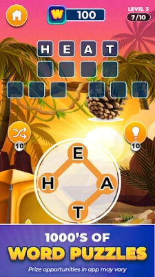 10 fun word puzzles are waiting to be solved within each uniquely themed level. Shuffle and link letters to build words and complete the word puzzle. Unlock surprise treasure chests filled with entries to redeem for real prizes. Every word game is easy to play and easy to KEEP PLAYING! In those rare moments where you get stuck, word hints are available as well to keep the word puzzle game fun going!