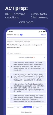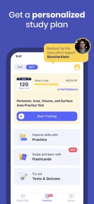 Getting ready for the most crucial exams couldn’t be easier. You can now study and practice at your own pace, without stress and pressure, and achieve great results. All necessary content is available in one app. Select your test date, and receive a study plan tailored personally for your needs. Track your progress, stay motivated, and ace the ACT or SAT!