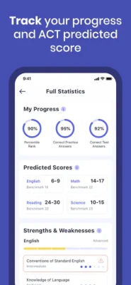 Get your ACT score prediction based on how you pass practice exams, and study the topics you need to revisit to improve your score.