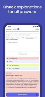 Easily check correct answers with detailed explanations, without the need to look for them at the end of a practice book.