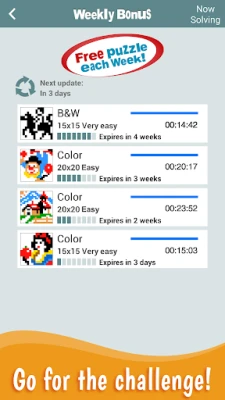 For more fun, Pic-a-Pix contains no ads and includes a Weekly Bonus section providing an extra free puzzle each week.