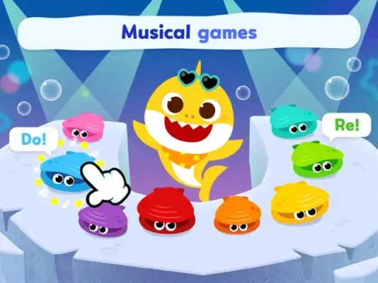 - Make your own music in instrument-themed games, like Bebefinn and Baby Shark instrument games.