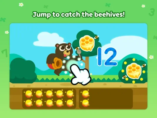 Pinkfong's animal friends will introduce and guide your baby through different kids number games, such as collecting beehives, tracing numbers on the leaves, and counting numbers of the snails.