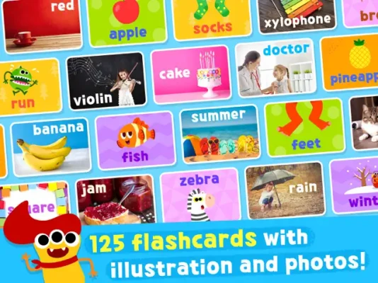 - Flashcards in both illustrations and real pictures, along with audios and names.
