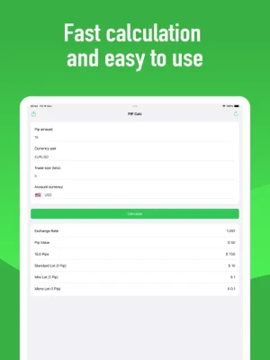 Pip Calculator is a simple and convenient tool designed to swiftly calculate the value of pips in Forex trading. It provides accurate information on pip values for various currency pairs, assisting users in risk management and making informed investment decisions effortlessly.